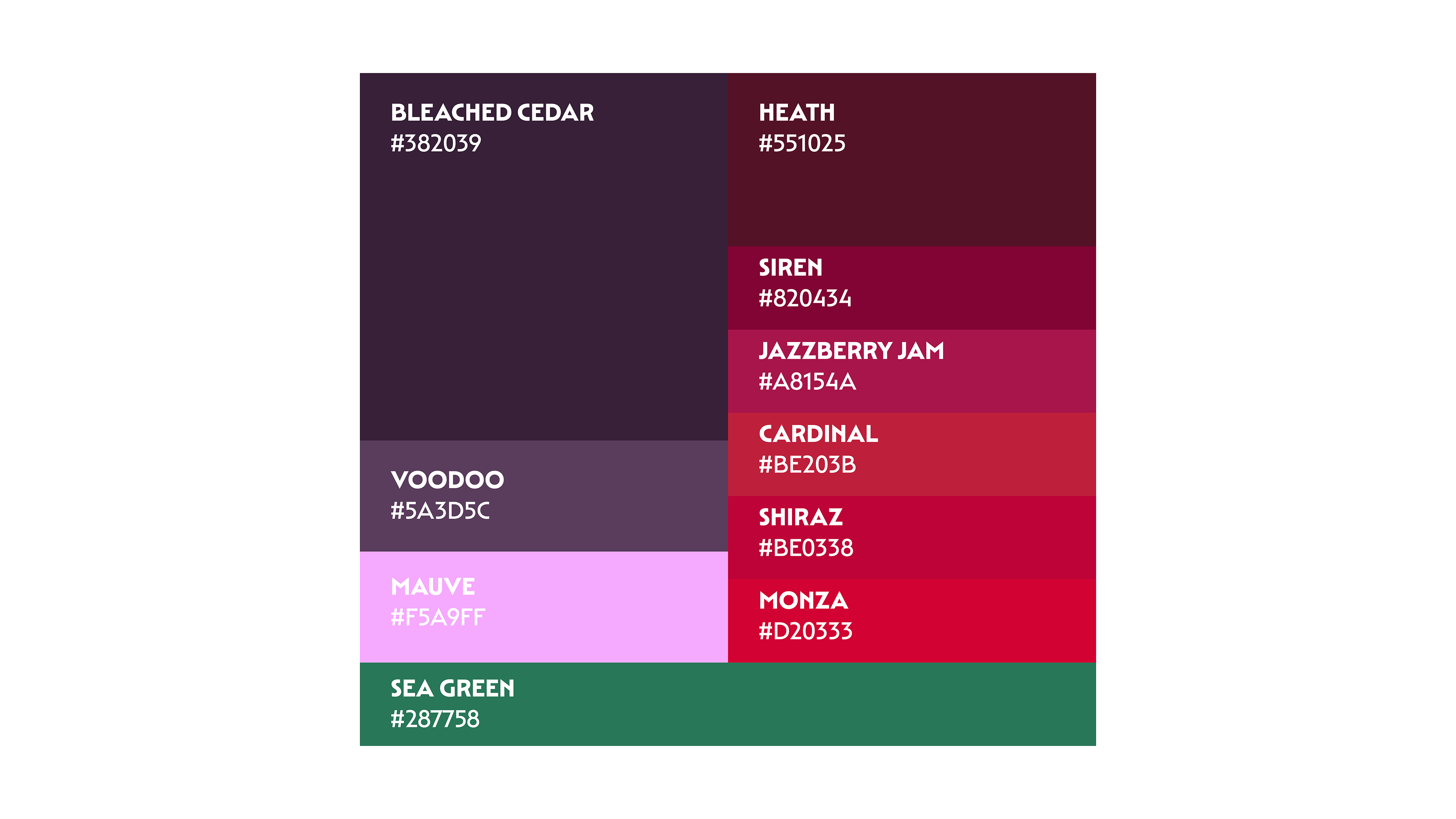 The color pallet is a seductive and mysterious fusion that encapsulates the essence of the nocturnal and enigmatic vampire world. Dominated by deep reds and purples tones, this palette exudes a sense of vampiric elegance and drama. Incorporating tones like Shiraz, Voodoo, Monza and Mauve it introduces subtle variations that enhance the overall richness and intensity. This palette is ideal for evoking a sense of gothic romance, immortality, and the shadows where vampires thrive. Whether applied to fashion, design, or branding, these red and purple tones create a visually captivating and “darkish” atmospher.