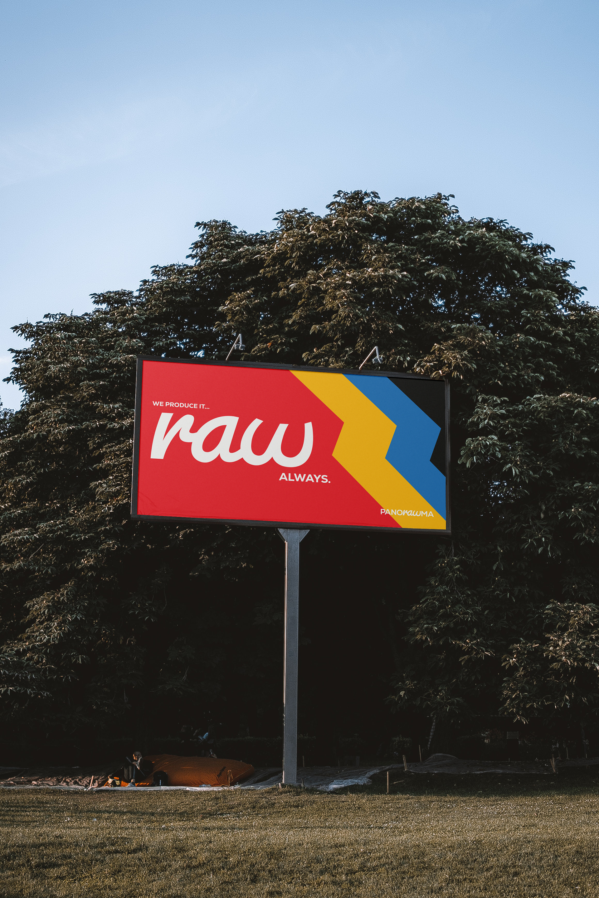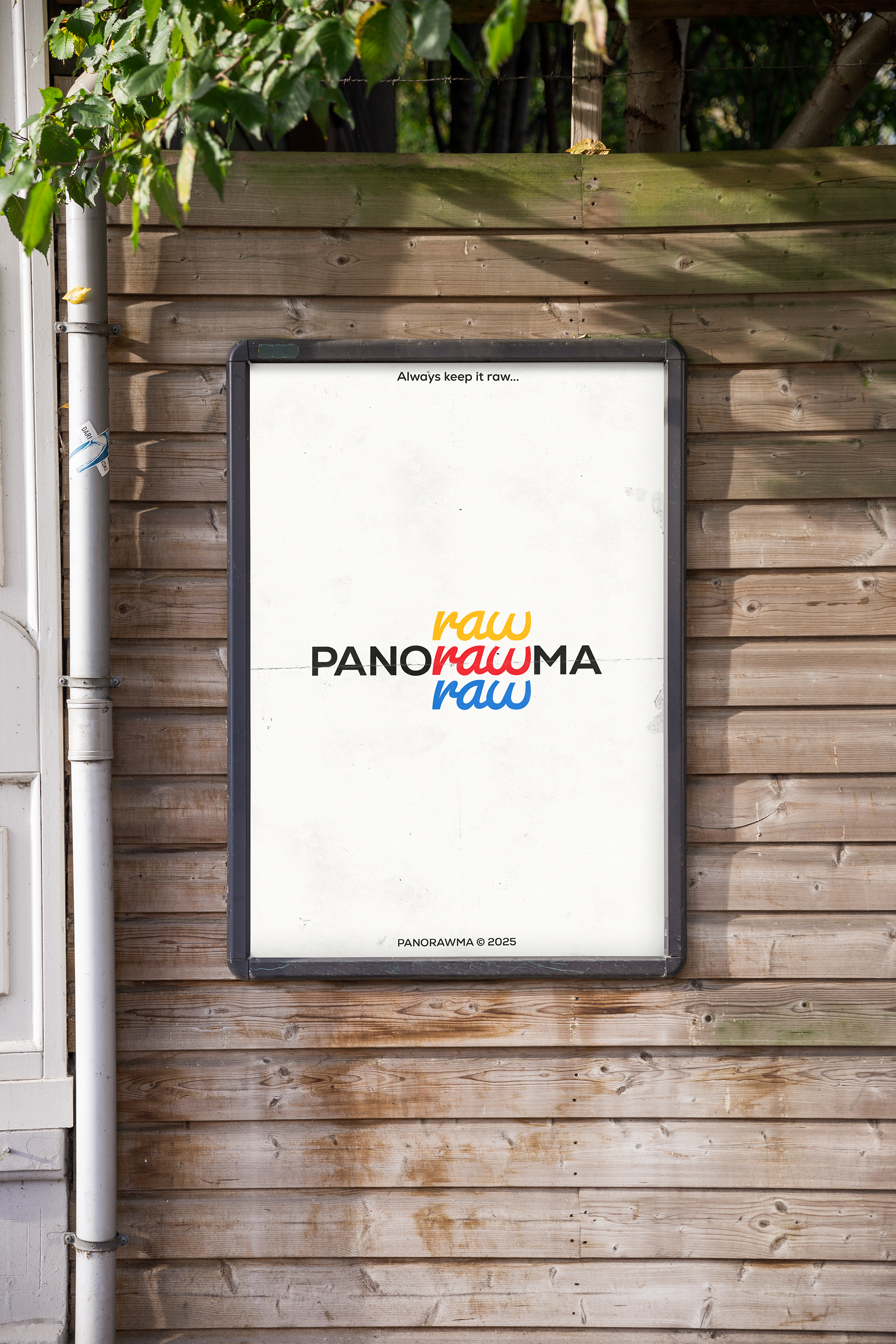 The word "raw" is rendered in a script font to visually represent its literal meaning: an unprocessed, human, and authentic element. While "PANO" and "MA" are set in a structured, processed typeface, the script font highlights the "raw" talent and organic creativity that define the brand's core.